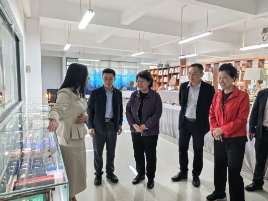 在陈承洁技能大师工作室,满目琳琅的贝雕作品令人应接不暇。李康对校区师生的创作成果给予高度评价。她表示,“艺科融合”已从抽象的概念逐渐成为蓬勃发展的新趋势,希望校区师生组建跨学科团队,积极探索人工智能、虚拟现实、数字媒体等前沿技术在艺术创作、展示传播乃至产业转化中的应用路径,培养兼具科技素养与艺术创新能力的复合型人才;同时,要紧密对接地方在文化、经济与社会等方面的实际需求,搭建产学研用合作平台,通过引导师生积极参与地方文化项目、提供设计服务、开展社区教育等多种形式,贡献高校智慧与解决方案。