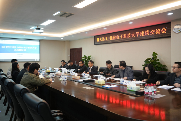 12月23日,科大讯飞股份有限公司(以下简称:科大讯飞)广西东盟总部董事、副总经理韩仲年带队来校调研交流。校长张文涛接待韩仲年一行,双方在花江校区办公大楼515会议室进行座谈交流。